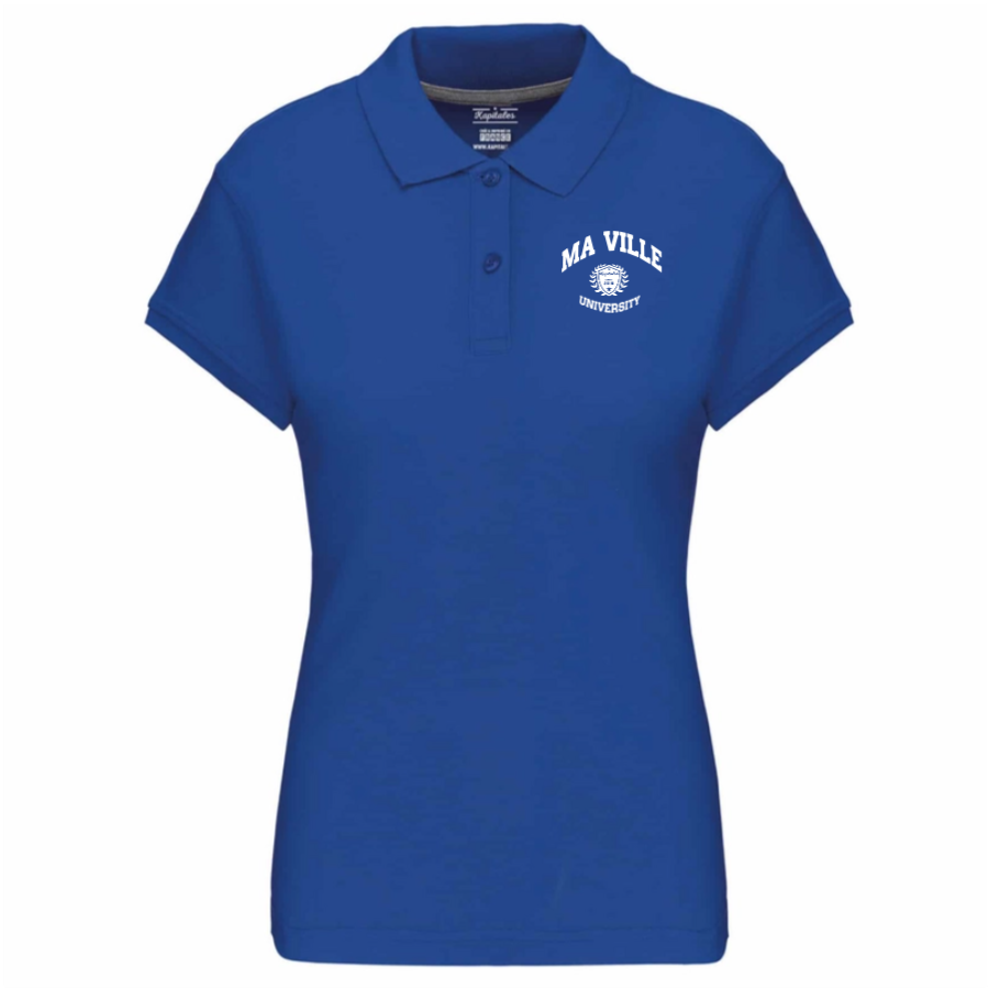Découvrez notre polo femme, une pièce intemporelle qui allie confort et élégance avec une touche de personnalisation unique. Ce polo est confectionné avec des matières de qualité, offrant une coupe ajustée qui met en valeur la silhouette tout en assurant une grande liberté de mouvement. Polyvalent, il s'adapte aussi bien aux tenues décontractées qu'aux looks plus habillés. Grâce à la personnalisation avec le nom de votre ville préférée, ce polo devient un vêtement unique qui reflète votre style.