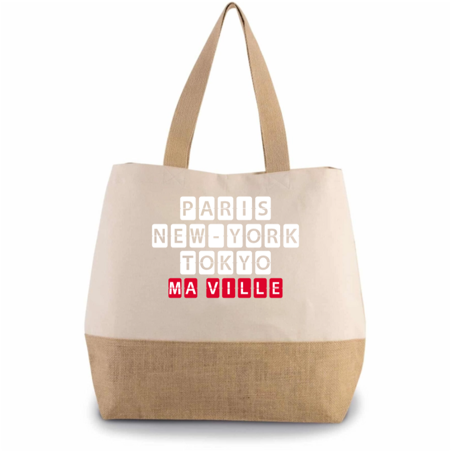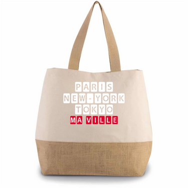 Ce sac cabas s'adapte à vos besoins en vous offrant à la fois un espace de rangement généreux et une personnalisation unique pour afficher fièrement votre ville de cœur.