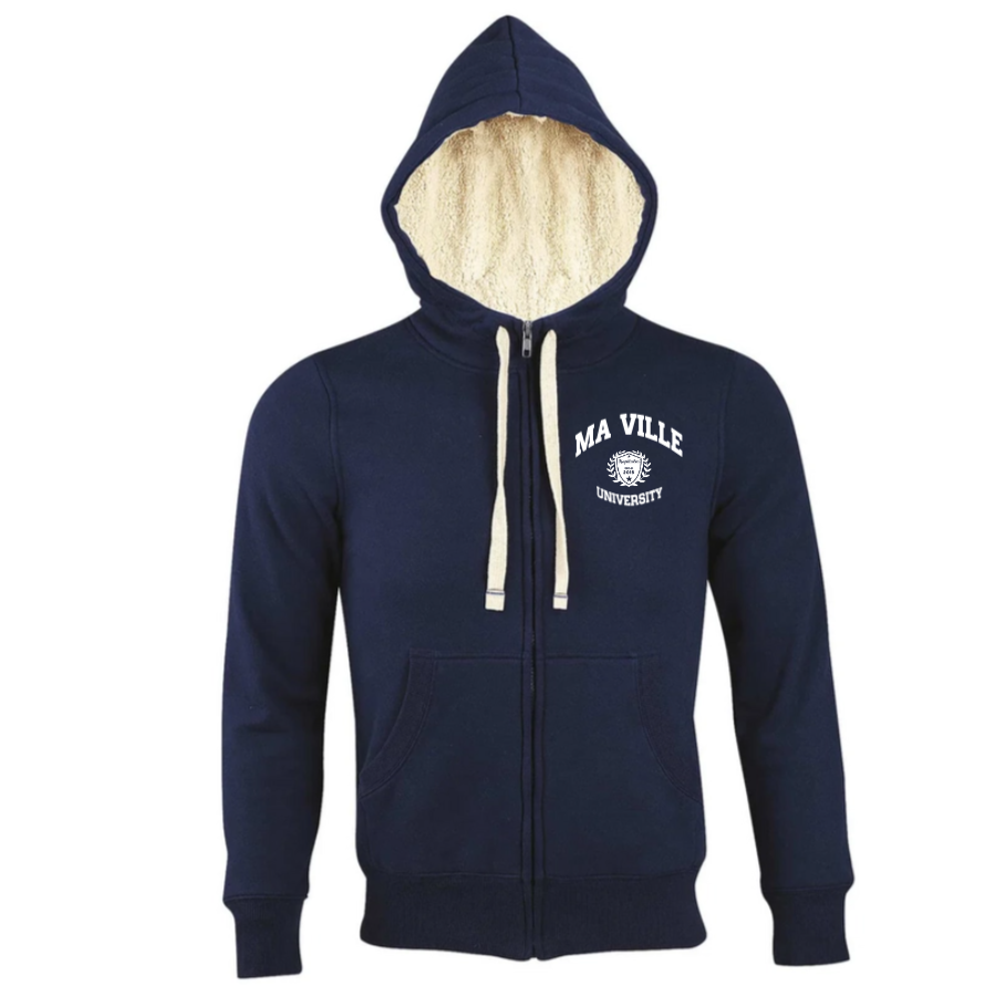 Ce Sherpa mixte est parfait pour les journées d’hiver ou les soirées plus fraîches, offrant un confort optimal sans sacrifier le style. Il est également personnalisable avec le nom de votre ville de coeur, vous permettant de porter fièrement votre appartenance.