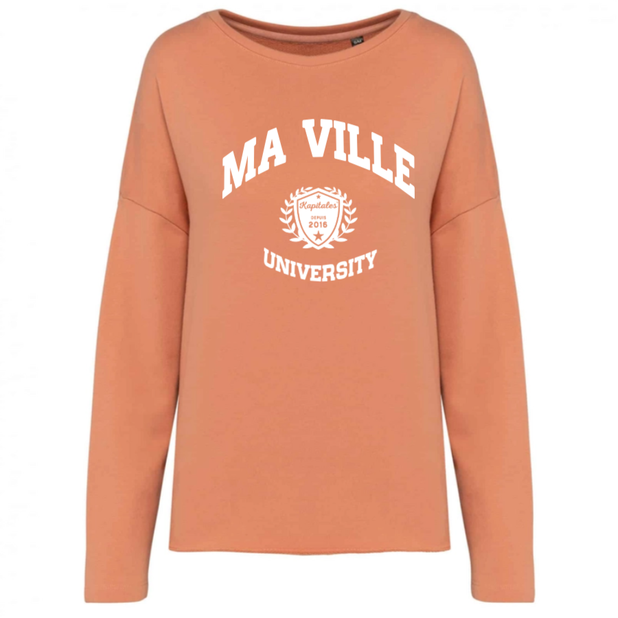 Le sweat loose femme est idéal pour celles qui aiment le style décontracté tout en restant tendance. Sa coupe ample vous permet de bouger librement tout en offrant un confort incomparable. Parfait pour vos moments de détente ou vos sorties, il peut être personnalisé avec le nom de votre ville, ajoutant une touche unique à votre garde-robe. Ce vêtement, à la fois responsable et stylé, est un véritable allié pour un look casual-chic au quotidien.