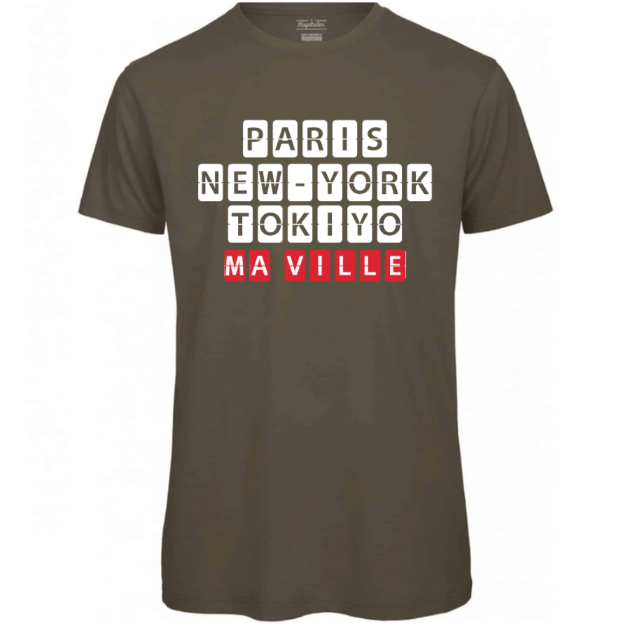 Optez pour notre t-shirt homme bio, créé et imprimé en France. Ce t-shirt est en coton biologique certifié GOTS, garantissant douceur et respect de la planète. Sa coupe classique et polyvalente en fait un essentiel de votre garde-robe, tandis que la possibilité de le personnaliser avec le nom de votre ville en fait une pièce unique et personnelle.