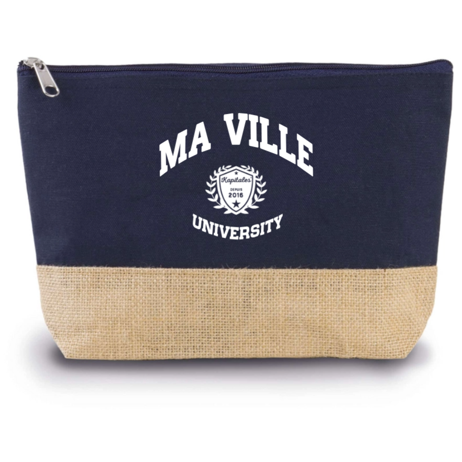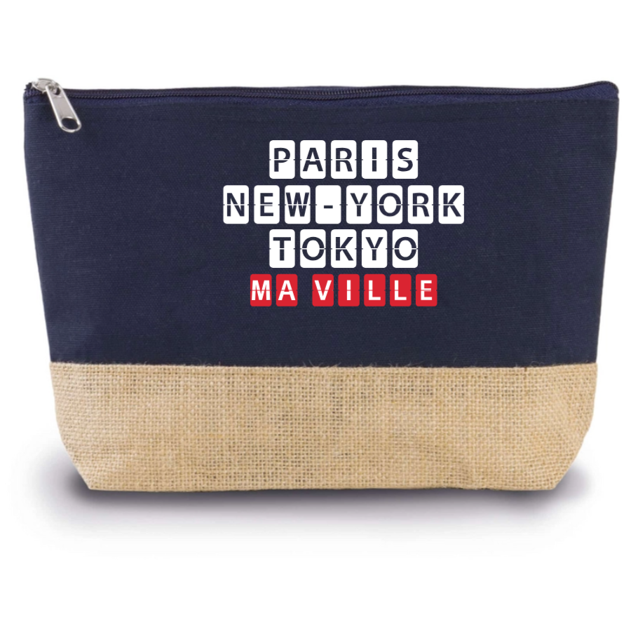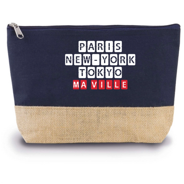 Pratique et élégante, notre Trousse Coton et Jute personnalisée est un indispensable pour organiser vos affaires avec style. En coton et de toile de jute, elle allie durabilité et charme naturel. Personnalisez-la avec le nom de votre ville préférée ou tout autre texte pour en faire un accessoire unique. Elle est dotée d'une fermeture zippée et mesure 27 x 5 x 18 cm, idéale pour ranger vos petits objets du quotidien comme vos produits de beauté ou fournitures de bureau.
