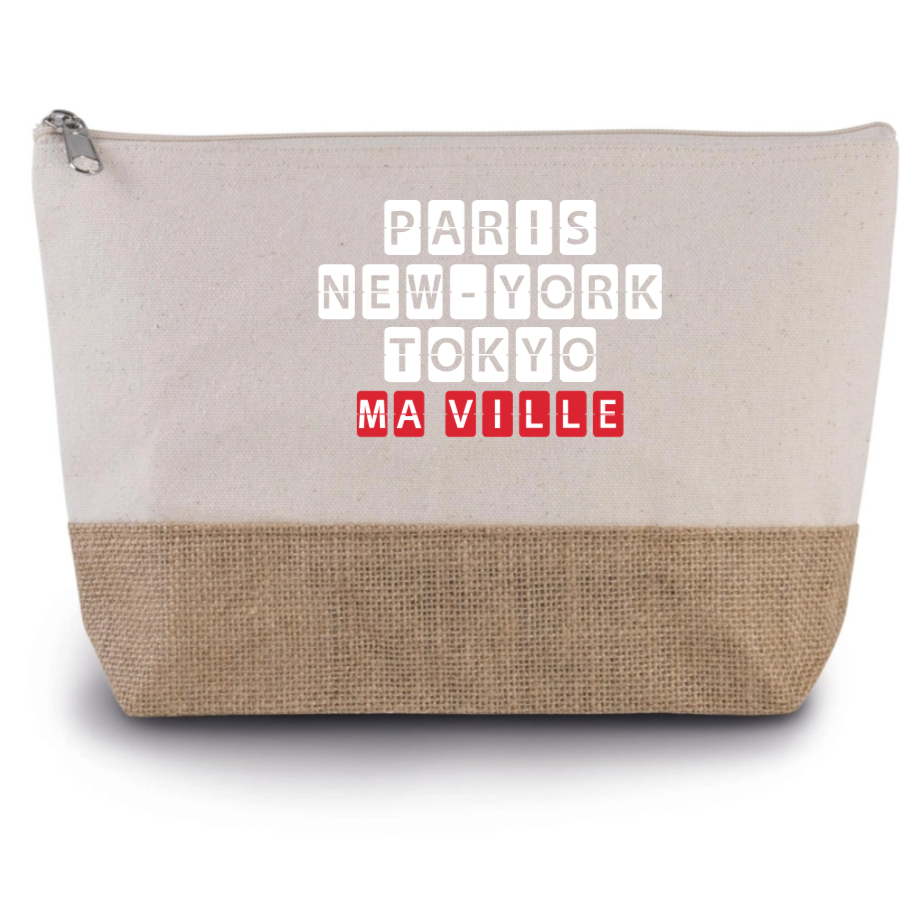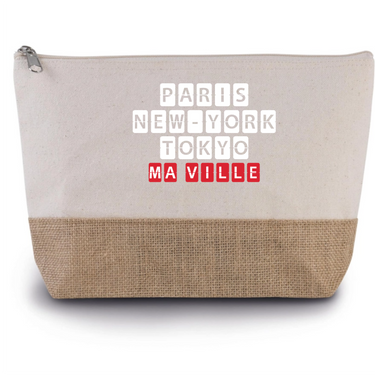 Pratique et élégante, notre Trousse Coton et Jute personnalisée est un indispensable pour organiser vos affaires avec style. En coton et de toile de jute, elle allie durabilité et charme naturel. Personnalisez-la avec le nom de votre ville préférée ou tout autre texte pour en faire un accessoire unique. Elle est dotée d'une fermeture zippée et mesure 27 x 5 x 18 cm, idéale pour ranger vos petits objets du quotidien comme vos produits de beauté ou fournitures de bureau.